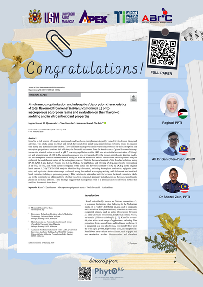 Aljawarneh, R. Y. A., Che Zain, M. S., & Zakaria, F. Standardized flavonoid-enriched extract from kenaf (Hibiscus cannabinus L.) promotes cutaneous wound healing in non-diabetic and diabetic model of adult zebrafish (Danio rerio) using non-invasive technique. Biocatalysis and Agricultural Biotechnology (69): 103772. (2025)